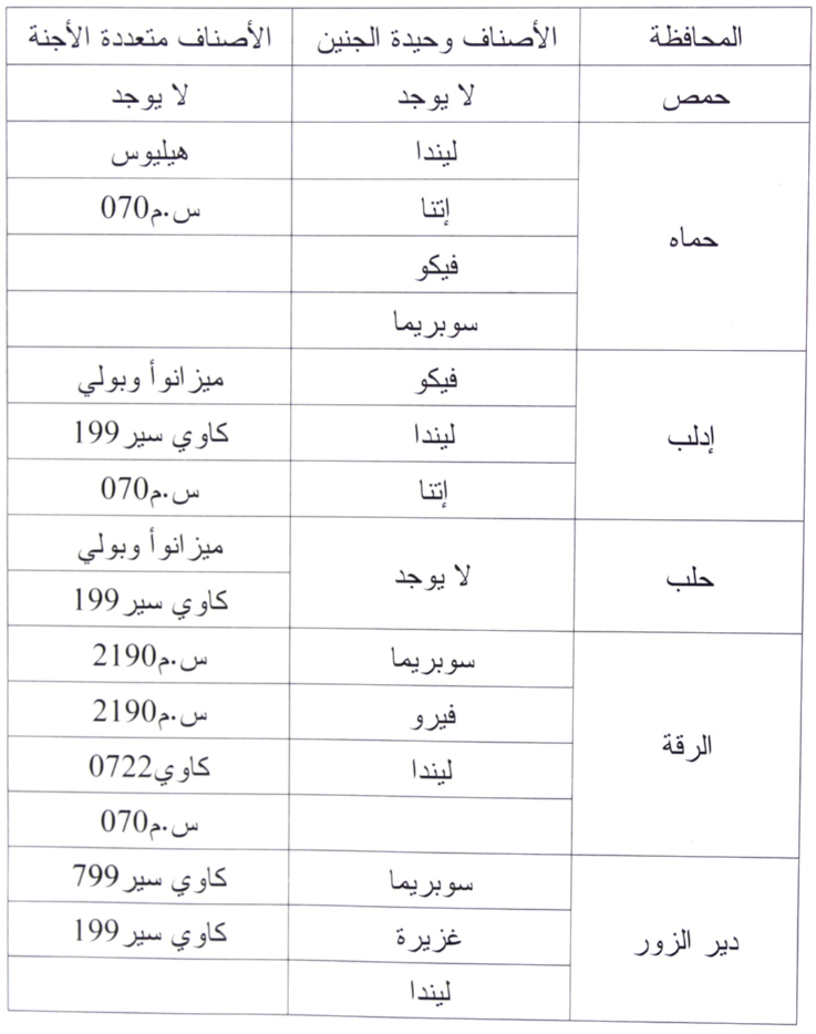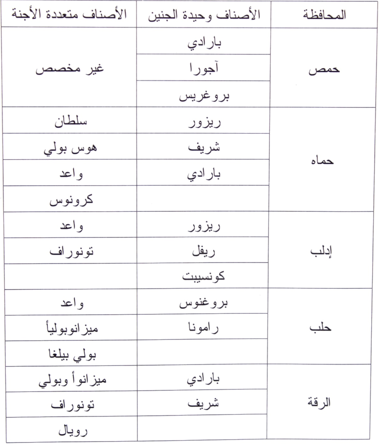 جدول (1): اصناف الشوندر السكري المعتمدة والمعممة على المزارعين للموسم 2005-2006 للعروة الشتوية.