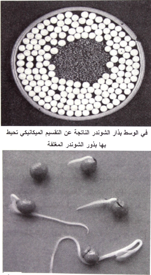شكل يبين انبات بذور الشوندر السكري وحيد الجنين صناعيا.
