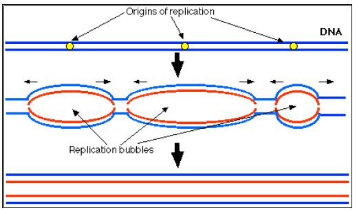 مناطق تحت عملية التضاعف التي تكون مفتوحة اشرطة DNA المزدوجة وتكون محاطة بمناطق مزدوجة من الاشرطة تظهر بشكل فقاعات.