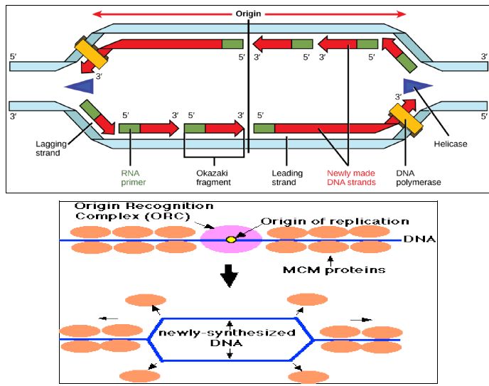 وتكون مواقع لتجمع عدد من البروتينات المشاركة في بدء التضاعف . ينتشر الالاف منها في كروموسومات حقيقية النواة لكبر حجم الكروموسوم ، ففي الخمائر هناك حوالي 400 منها وفي الانسان يوجد 30,000- 50,000 لتواكب الاحداث الزمنية ، اما الخلايا بدائية النواة فتحوي على اصل واحد