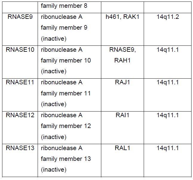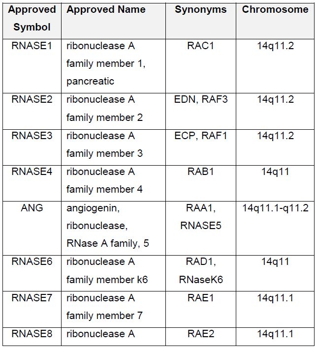 اي مجموعة من الانزيمات تحلل RNA وتسمى RNases , RNAases ، تعمل على الحوامض النووية تقع ضمن مجموعة (EC 2.7) بالنسبة للانزيمات Phosphorylation Enzymes و(EC . 3.1) بالنسبة للانزيمات الحالة Hydrolytic Enzymes.