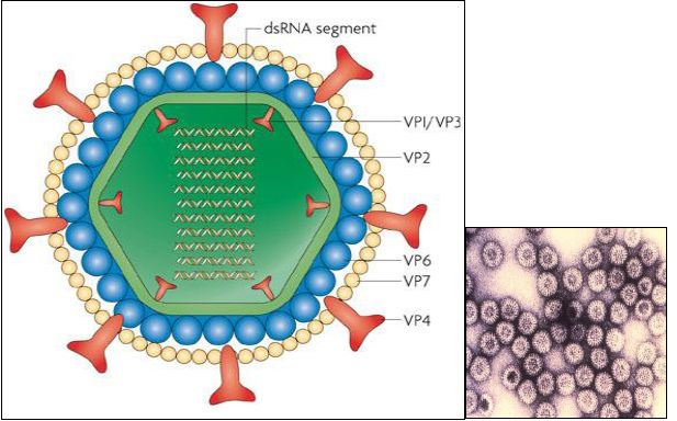مجموعة من الفيروسات يكون جينومها من dsRNA ،تعود الى العائلة Reoviridae البعض منها يسبب التهاب الامعاء الحاد في الانسان بالدخول عن طريق الفم ، وهي اكثر مسببات الاسهال في الاطفال الاقل من 5 سنوات عالميا ، وتسبب وفاة اعداد كبيرة سنويا في جميع انحاء العالم . سميت بهذا الاسم لان تركيبها يشبه العجلة . تكون مقاومة للظروف البيئية وتبقى لمدة اسابيع الى اشهر . تصيب الابقار والقرود ولكن هذه تكون مختلفة وراثيا عن تلك التي تصيب الانسان