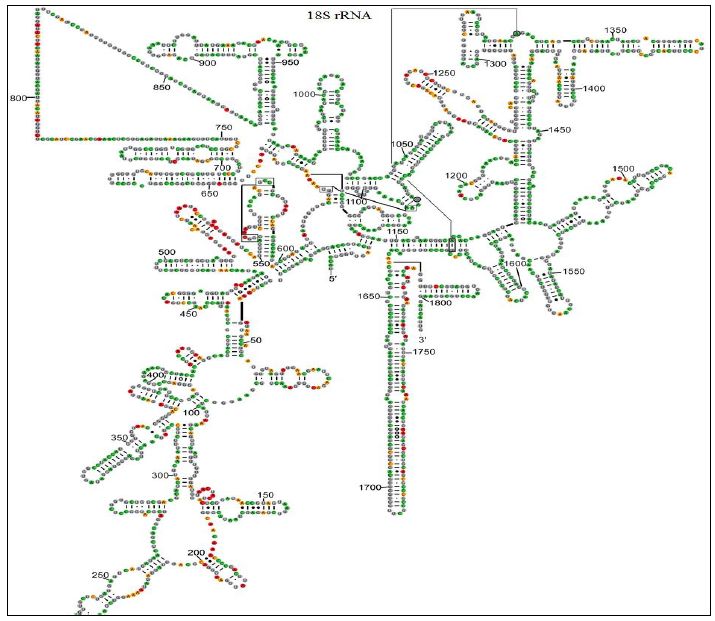 جزيئات تشارك في بناء الرايبوزومات ويكون اساسيا في تخليق البروتينات في كل الاحياء ، ويعد من جزيئات RNA الثابتة ، يساعد في فك شفرات mRNA ، ينتج من انتساخ DNA في نويات الخلايا حقيقية النواة مع العديد من البروتينات التي تصل حوالي 50 وثلاث من جزيئات rRNA لتشكل الوحدات الصغيرة او الكبيرة من وحدات الرايبوزوم . يتوزع على وحدات الرايبوزوم في الخلايا المختلفة مثل5S rRNA , 16S rRNA , 23SS rRNA , 18S rRNA , 5.8S rRNA او rRNA28 وفي الخلايا حقيقية النواة تختلف تراكيبه وفق المنطقة التي يشارك فيها كما ان الجزيئات تختلف في الخلايا حقيقية النواة عن بدائية النواة في البكتريا يعد وجود اوبرون واحد للrRNA هو الشائع ولكن بعض البكتريا تمتلك 10 اوبرونات اعتمادا على معدل النمو ويصل العدد ذروته (ربما) في البكتريا Photobacterium profundum التي تحتوي على 15 اوبرون وهي بكتريا تعطي وميض حيوي ومتعايشة مع بعض القشريات البحرية. كما يمكن لاوبرونات rRNA ان تحوي على أكثر من ممهد كما في Escherichia coli وبعض البكتريات القريبة منها. في البكتريا تحوي الرايبوزومات الوحدات الكبيرة (50S) (LSU) ، والوحدة الصغيرة SSU) Small Subunit ) . الكبيرة تحوي على 23S rRNA و 5S rRNA. اما الوحدة الصغيرة فتحوي على 16S rRNA المكون من حوالي 1540 نيوكلوتيد ويكون تراكيب من عروات وماشات متعددة ، ويكون مقسما الى دومينات قد تصل الى اكثر من خمس دومينات والتراكيب ثلاثية الأبعاد لل 16S rRNA تكون مهمة لوظيفة الجريئة ولذلك كان هناك ثبوت او صيانة لتوالياتها في البكتريا ، وربما كان ذلك عائدا الى ان هذه الجزيئة ترتبط بعدد من البروتينات في الوقت نفسه اللازمة لعملية الترجمة ، وثبوت الجزيئات رشحها في كثير من الأحيان الى استخدامها في عمليات التصنيف وإيجاد العلاقة التطورية. ولكن مع هذا تحدث بعض التغيرات مثل الطفرات ولكنها تكون مقبولة وذلك لان حدوث الطفرات في موقع ما فإنها تستوعب في الجزء المكمل من المناطق المزدوجة Stem للجزيئة وبذا تحصل محافظة على التركيب العام للجزيئة. فضلا عن ان مناطق العروات تكون فيها حرية حدوث الطفرات محدودة نظرا لتداخلها مع البروتينات الرايبوزومية وبذا يكون هناك انتخاب طبيعي تطوري نحو الثبوت وصيانة هذه الجزيئات التي تشارك فيها البروتينات بطرق مختلفة.