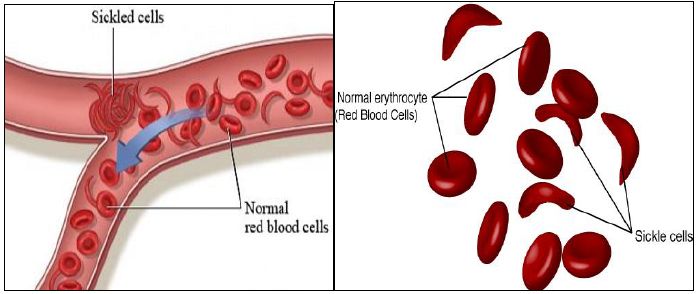 والخلايا المعلولة لا تسطيع حمل كميات كافية من الاوكسجين لانحاء الجسم . وعند الاصابة تصبح الخلايا منجلية او هلالية الشكل غير فعالة وتتكتل في اوعية الدموية الصغيرة وتغلقها اي تكون الجلطات . تكثر في الافارقة ومن ميزاته تضخم الطحال وفقر دم مزمن وخمول وضعف والالام في المفاصل .