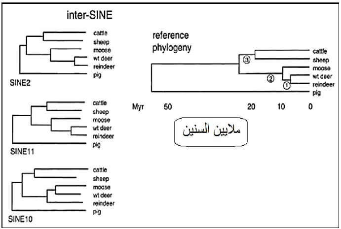 Short Interspersed Nuclear Elements تواليات توجد في الخلايا حقيقية النواة بعضها يضاعف نفسه بطريقة القفز التي يتوسطها RNA لذا يطلق عليها Retrotransposons وتشكل حوالي 25 -40 % من جينومات اللبائن ، فهي تمثل احد افرع التواليات المتكررة ، ويطلق عليها احيانا Non-LTRاو Poly-A Retrotransposons،بعض الاحيان تساعد في نشوء جينات جديدة وكذلك تساهم في تحولات الجين وتنظيم الجينوم ومن امثلتها Alu Sequence.