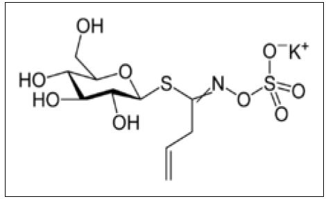 المسئول عن الطعم المر لنباتات العائلة الصليبية مثل القرنابيط المطبوخ وBrussels Sprouts والمركب مسئول عن الطعم اللاذع للخردل والفجل. يتحرر المركب كباقي أفراد المجموعة Glucosinolates نتيجة لتأثير إنزيم Myrosinase والذي يتحول في النهاية الى Allyl Thiocyanate وصيغته موضحة في الشكل الآتي :