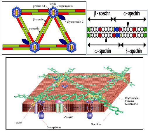 بروتين قابل للتقلص ويرتبط الى Glycophorin على السطح الداخلي للغشاء البلازمي لكريات الدم الحمر ويحافظ على شكلها بعد التعاون مع الاكينات لعمل شبكة لاعطاء الخلايا شكلها ومرونتها، له وزن جزيئي عالي ، يتكون من وحدتين الفا بوزن جزيئي 280,700 ، ووحدة بتا بوزن 246,040 ويعد اهم مكونات الغشاء الخلوي لكريات الدم الحمر ويوجد ايضا في الدماغ والامعاء الدقيقة وغيرها ، وهو من البروتينات الليفية او الهيكلية الذي يقع عند الغشاء البلازمي من الداخل في الخلايا حقيقية النواة . يساعد في الحفاظ على التركيب الهيكلي للغشاء البلازمي ويكون بشكل Hexagonal ويرتبط بخيوط الاكتين . تعرضه لتاثير الانزيمات الحالة مثل Caspases تؤدي الى الاستماتة اما التعرض للCalpain فانه يؤدي الى فلق البروتين وتنشيط عملية النخر يؤدي الى تخريب الغشاء وموت الخلايا