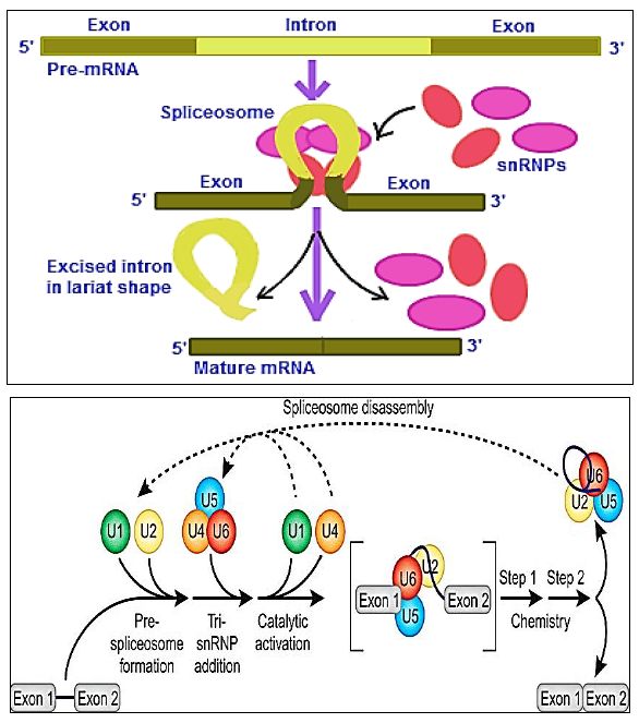 أجسام معقدة من البروتينات وRNA التي تقوم بتقطيع مناطق Introns من RNA المنتسخ من DNA وإعادة لحم المناطق الفعال Exons ليتكون mRNA الذي يمكن ترجمة رسالته.