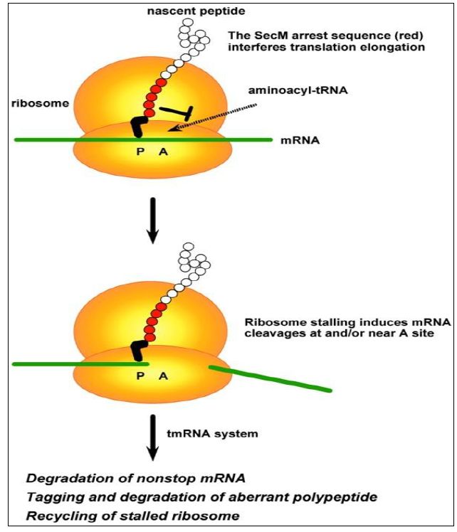 رايبوزوم متعثر ومتأخر في عمله خاصة في منطقة التوهين Attenuator Region اثناء عملية تخليق البروتينات ، وهناك عدة اسباب لذلك ، فضلا عن وجود الحلول لها . ومعظم هذه التعثرات تحل بواسطةmtRNA .