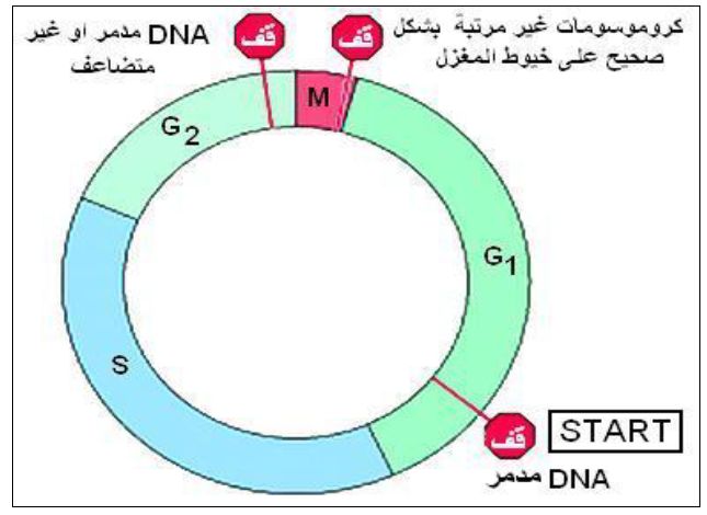 وتكون نقاط السيطرة مهمة في الانتقال من مرحلة إلى أخرى وبدونها تكون الخلايا معرضة للهلاك ، فمثلا من الضروري ضمان أن الخلايا قد أكملت تضاعف DNA حتى تستمر في عملية الانقسام وإلا لا تستطيع الخلايا الناتجة استلام نسخ كاملة من المواد الوراثية . فبواسطتها يمكن السيطرة على أكمال مرحلة بالكامل قبل الدخول في مرحلة جديدة .