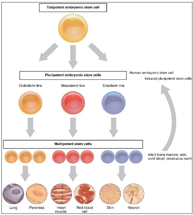 الثاني: Stochastic Differentiation وفيه تتطور الخلية الجذعية الى خلايا بنوية متمايزة وتقوم خلايا جذعية اخرى تعاني انقسام خيطي لتعطي خليتين جديدة مشابه للاصل .