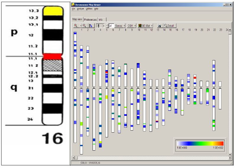 الحزم التي تظهر في الكروموسومات عند استعمال تقنيات التحزيم Banding Stain ، اذ يقسم الكروموسوم الى حزم رئيسة وهذه تقسم الى حزم ثانوية لكلا ذراعي الكروموسوم الطويل q والقصير p كما في الشكل الاتي :