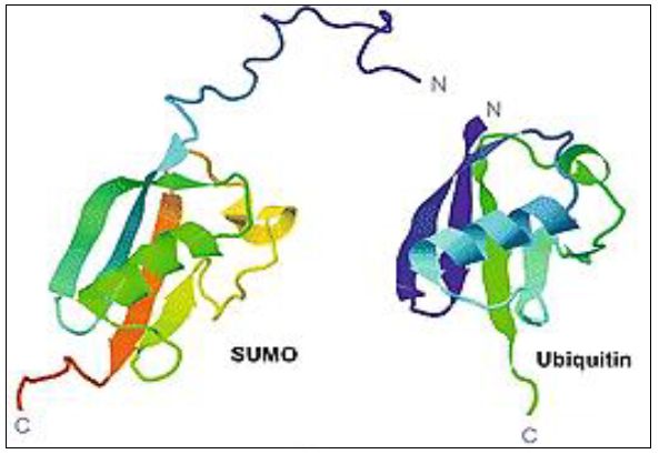 Small Ubiquitin -like Modifier عائلة من البروتينات الصغيرة المحورة للبروتينات ، ترتبط بشكل تساهمي او تنفصل من البروتينات في الخلية مؤدية الى تغيير وظائفها ، وهي ترتبط الى البروتينات بعد الترجمة كاحدى آليات التحوير بعد الترجمة . هذه المجموعة مهمة لعيوشية الخلايا حقيقية النواة وتعمل على تنظيم دورة حياتها.تشارك في العديد من الفعاليات الخلوية ، منها انقلاب البروتينات ، اصلاح DNA،تحفيز عملية الانتساخ ، تكوين الجسيمات النووية ، الحفاظ على سلامة الجينوم ، نقل بعض المواد من والى النواة ، نقل الاشارات وغيرها . توجد ثلاث نظائر منها SUMO 1, 2 ,3 في الاحياء المختلفة .
