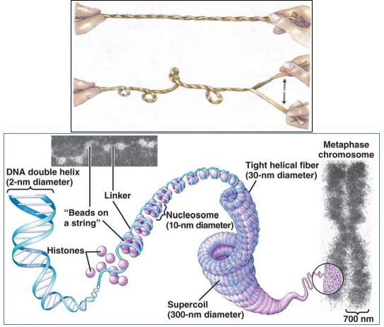 وتكون العملية مهمة لعدة اسباب منها تعبئة الجزيئات مثل DNA وبالنسبة للمواد الوراثية تقوم بها مجموعة من الانزيمات الخاصة هي Topoisomerases التي تساهم وتسهل عمليات التضاعف والانتساخ . وبالنسبة لل DNA في حالة الارتخاء B-DNA يحصل التواء على المحور الاساسي كل 10.4 -10.5 قاعدة . ويمكن ان يكون الالتواء الى اليمين باتجاه عقرب الساعة او الى اليسار بعكس اتجاه عقرب الساعة ، والالتواء الى اليسار يعني الفتح وجعل الجزيئات تحت اجهاد التواء واطيء وهو ما تحتاجه عمليات التضاعف والانتساخ .
