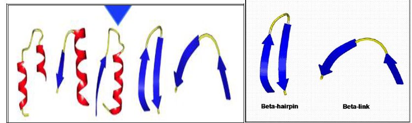الشائعة في البروتينات الكروية تسمى S Motifs وممكن ان تكون لحلزونات الفا Helix hairpins او صفائح بتا كما ذكر آنفا او خليط من الاثنين
