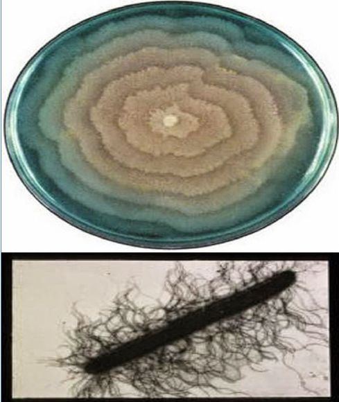 ولكن بعض الأحيان تتميز بتكوين دوائر من النمو المتحدة المركز كما في بكتريا Proteus، والسبب في ذلك أن بكتريا Proteus تنمو في البداية بشكل مستعمرات عادية وتكون خلايا ذات أسواط منتشرة على الخلية البكتيرية التي تكون عصيات بطول 2– 4 مايكرون ، وبعد مدة تتحول بعض الخلايا الموجودة على أطراف المستعمرات إلى خلايا كبيرة وعملاقة يصل طولها إلى 20– 80 مايكرون وتكثر عليها الأسواط ويطلق عليها الخلايا السابحة Swarm Cells وتقوم بالهجرة إلى مناطق جديدة عن حافات المستعمرات بحثا عن المواد الغذائية ثم بعد ذلك تتجزأ كل واحدة إلى عدة عصيات مشابهة للخلايا العادية تبدأ بالانقسام والتكاثر مكونة حلقة من النمو الكثيف ، وبعد مدة تتكون خلايا عملاقة في الدائرة المحيطة بالحلقة الجديدة ، وتعيد الكرة مبتعدة عن مركز المستعمرة وبمرورالزمن يتغطى السطح بنمو ذو حلقات متحدة وتكون هذه الظاهرة مميزة لبكتريا Proteus والتي تكون إحدى ظواهر التخصص في البكتريا ، ويمكن أن تمنع بزيادة نسبة الاكر عن المعتاد 1.5– 2% أو بإضافة بعض المواد المثبطة.
