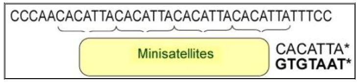 • Minisatellites تتابعات من 10 - 60 قاعدة .