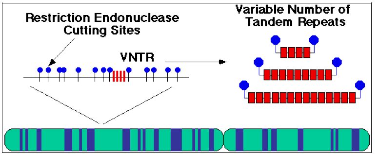 والأخيرة تساعد في تحديد البصمة الوراثية للاشخاص وينتج الاختلاف من عمليات الاقحام او الحذف مما يجعل لكل شخص طمغة مميزة Tag التي يمكن تحديدها من طول VNTRs عند الترحيل الكهربائي .