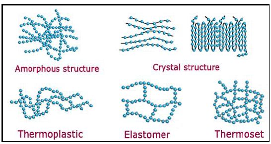 توجد انواع منها تختلف بدرجة بلورتها وكثافتها وترتيب السلاسل فيها ، والمواد التي تصنع في الوقت الحاضر هي Polyurethane , Polypropylene , Polycarbonate , Acrylic وتختلف عن البلاستيك Thermosetting التي تتلف عند التعرض للحرارة .