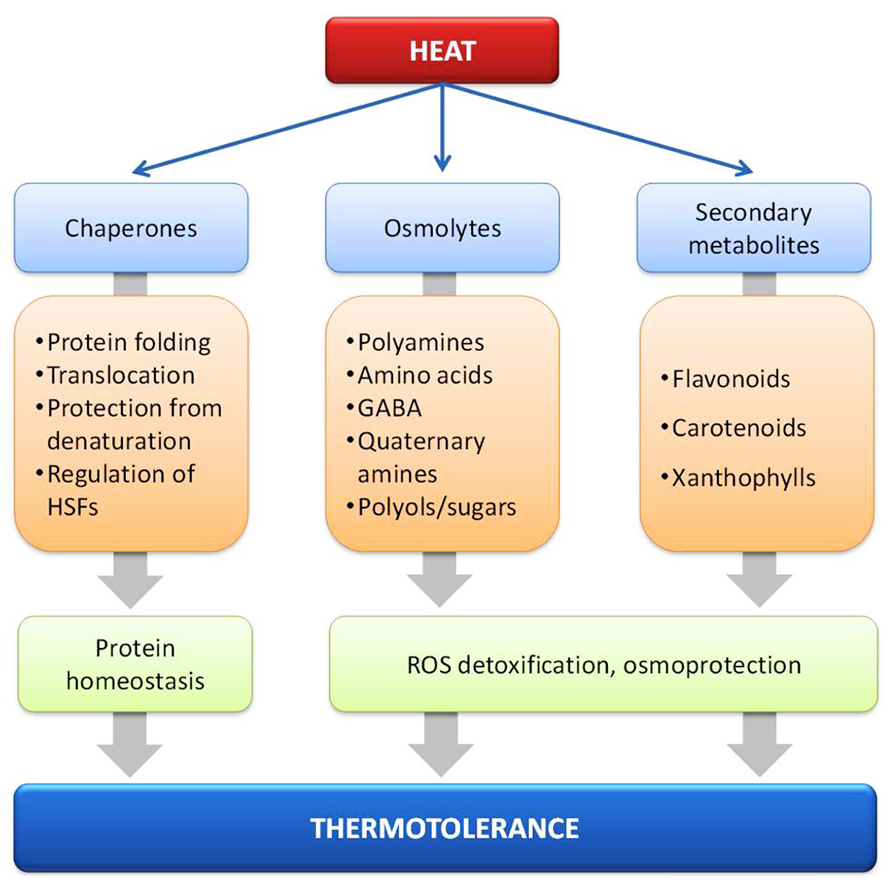 والتحمل الحراري يقاس بقابلية الخلايا على الصمود للحرارة المميتة ، اما قلة حساسية الخلايا للحرارة فيتم بواسطة مسارات الاستجابة للصدمة الحرارية HSR) Heat Shock Response) و الاستجابة للاجهادات العامة GSR)General Shock Response) في خلايا حاوية على مستويات عالية من الحوامض الدهنية غيرالمشبعة ، فالخلايا الحاوية على تراكيز عالية من الحوامض الأخيرة يمكن ان تقاوم الإجهاد الحراري بدرجة كبيرة وهذا يعطي الإمكانية لهندسة الخلايا وجعلها تقاوم الإجهاد الحراري والملحي بواسطة تغيير نسب الحوامض الدهنية التي تحويها . واستجابة الخلايا للحرارة المرتفعة يحفز او يفعل مسار الحفاظ على سلامة الخلية في الخمائر مثلا ويكون ضروريا عند نمو الخلايا بدرجات حرارة عالية .