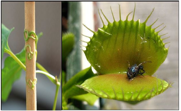 وفي النباتات تمثل الظاهرة انحناء النبات نحو الأجسام الصلبة والالتفاف عليها بالنسبة للنباتات المتسلقة.