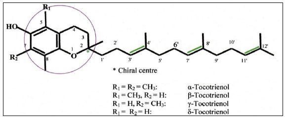 أنواع مختلفة من فيتامين E مثل γ - α - β - tocopherol وتنتج من قبل العديد من الطحالب الصغيرة بمختلف أنواعها وغيرها من الاحياء ، وتختلف نسب هذه الفيتامينات في الوزن الجاف للطحالب اعتماداً على كثير من العوامل منها نوعية الكائن المنتج وظروف تنمية الكائن وكذلك يتأثر المحتوى بطريقة حصد الكائنات وطرق استخلاصها.