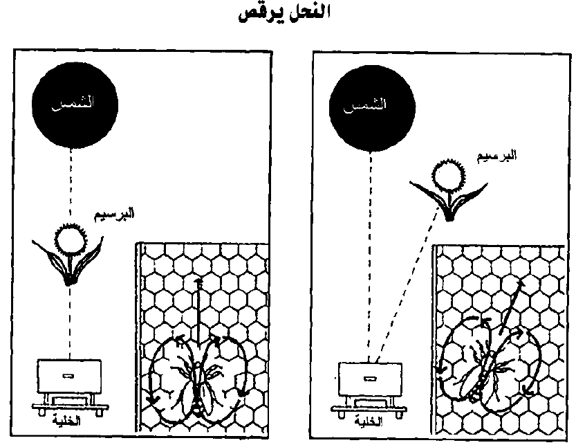 تقوم الشغالة بالرقص على الأقراص الشمعية داخل الخلية بحيث أنه لو كان اتجه رأس الشغالة في الحركة المستقيمة إلى أعلى فإنه يشير إلى أن مصدر الغذاء في نفس اتجاه الشمس، وإذا كانت رأسها مائلة بزاوية ما على يسار الخط الرأسي، فمعنى هذا أن مصدر الغذاء يقع على يسار الشمس بنفس مقدار الزاوية، وأيضا إذا كانت رأسها مائلة بزاوية على يمين الخط الراسي فإن مصدر الغذاء يقع على يمين الشمس بنفس مقدار الزاوية، إذا كان اتجاه الراس لأسفل، فهذا يعني أن مصدر الغذاء في الجهة المقابلة من الشمس.