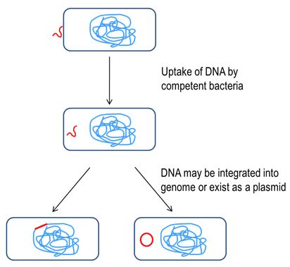وفي العلوم الجزيئية الوراثية تعني تغيير الخلايا خاصة البكترية بواسطة DNA العاري الذي يمتز على سطوح الخلايا المؤهلة للتحول ، اي انها تكون وسيلة من وسائل النقل الافقي .