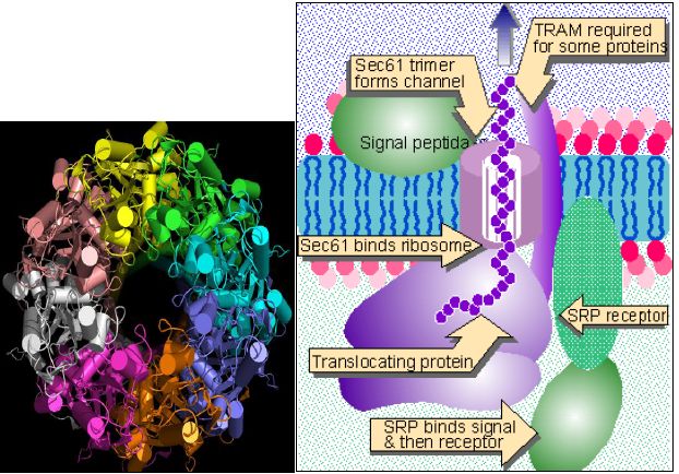 قنوات موجودة في الاغشية الخلوية لخلايا بدائية النواة او الشبكة الاندوبلازمية للخلايا حقيقية النواة التي تستلم البروتينات الحاملة لببتيدات الاشارة المراد افرازها الى الخارج وتسمى عملية النقل Translocation ، وتكون بمثابة معقدات بروتينية تساعد في نقل الببتيدات المتعددة عبر الاغشية وتسمى ايضا Translocation Channel ،Translocator، ينقل الببتيدات الناشئة الى داخل الشبكة الاندوبلازمية في الخلايا حقيقية النواة أي يوجد في غشاء هذه الشبكة ، وفي البكتريا يوجد في الغشاء الخلوي . والمعقد يوفر امكانية اقحام البروتينات الغشائية في الطبقة الدهنية الثنائية للغشاء ، ويوفر قناة داخلية محبة للماء لعبور الببتيدات فضلا عن توفيره امكانية دمج القطع اللاقطبية في الغشاء .
