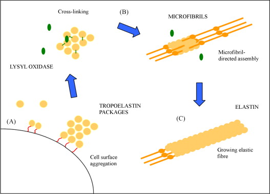 طلائع لبروتين المطاطين Elastin لا يحوي على الاتصالات العرضية لل Desmosine او Isodesmosine ، وهي بروتين وزنه الجزيئي 64 -66 كيلو دالتون ويتكون من 830 حامض اميني ذائب في الماء يرتبط مع وحدات اخرى لتكون المطاطين الذي يوجد في العديد من الاحياء بدرجات مختلفة التطور خاصة في الجزء الكاره للماء. اذ يتكون المطاطين من ارتباط عدد من الطلائع بواسطة الانزيم Lysyl Oxidase ليكون كتلة غير ذائبة في الماء ، وتكون ثمالات اللايسين هي المسئولة عن هذه الارتباطات العرضية ، ونتيجة لوجود الخياطة البديلة فهناك حوالي 11 من النظائر للبروتين في الانسان .