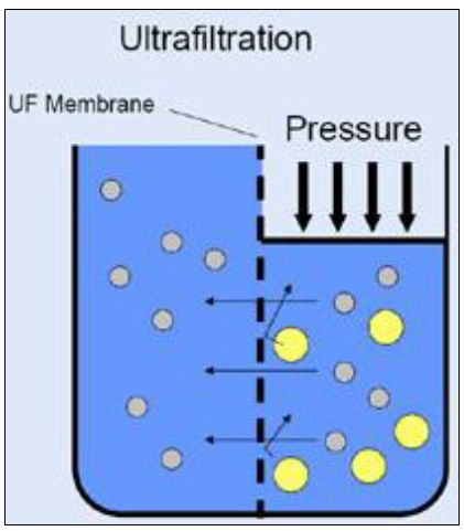 عملية فصل الجزيئات الذائبة في السوائل بعضها عن بعض اعتماداً على حجم الجزيئات وذلك باستعمال أغشية شبه ناضحة خاصة، وعند وضع النماذج المراد فصلها أمام الأغشية شبه الناضحة وتسليط ضغطاً مناسباً عليها فإنه يسمح بمرور الجزيئات الصغيرة ويمنع مرور الكبيرة ، وعليه يكون حاوياً بشكل رئيس على المواد المذيبة وخالياً من الجزيئات الذائبة ، ويسلط الضغط لأن ثقوب الأغشية تكون صغيرة لذلك يكون مرور الجزيئات بطيئاً والضغط المسلط بحدود 200–400 باسكال للإسراع في عملية الفصل كما موضح في الشكل الآتي :
