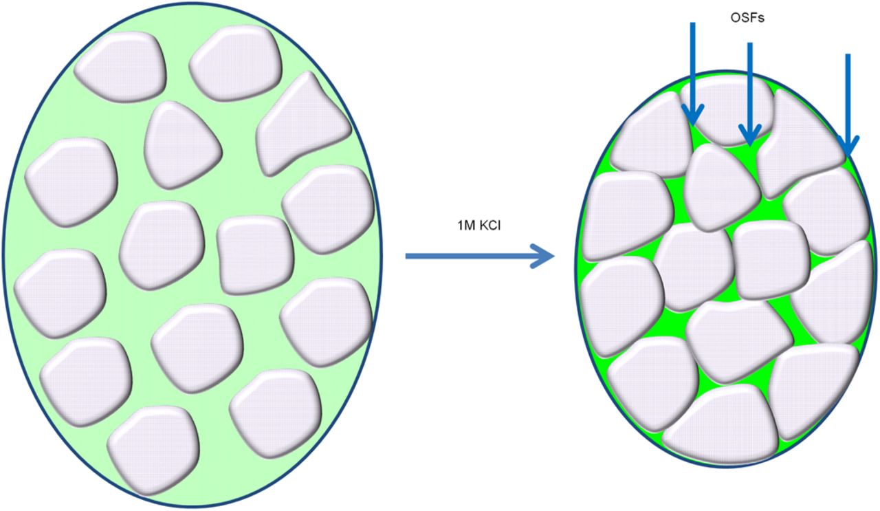 الصدمة التي تعانيها الخلايا في وسط يكون جهد الماء فيه قليلاً (Water Potential Ψ) نتيجة إضافة المواد مثل السكر والملح وهي المصطلح المرادف لل Hyperosmotic Shock .