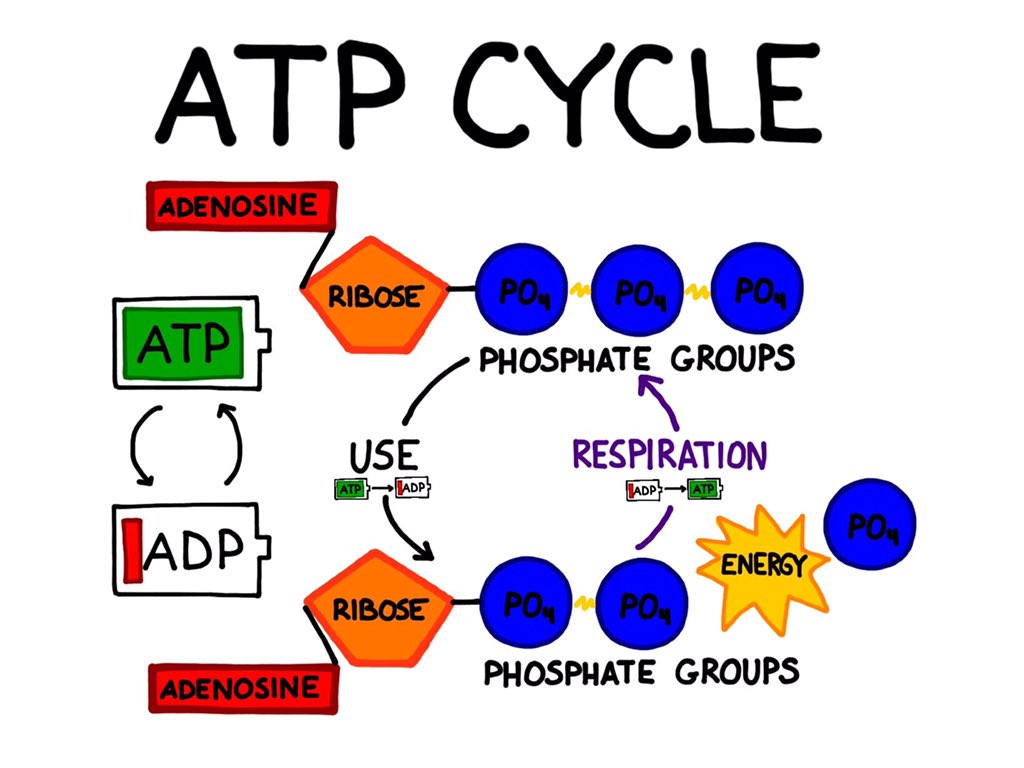 شكل الطاقة الممكن استعمالها في الأنظمة الحيوية وهي جزيئات ATP ومركب (Phosphoenolpyruvate (PEP وفوسفات الاستيل Acetyl Phosphate ،و Acetyl – Co A اذ أن اشكال الطاقة الاخرى سواء كانت ضوئية أو كيماوية لا يمكن أن تستعمل في عمليات البناء الخلوي ، لذلك تحول في تراكيب خاصة مثل الأجسام الكاربوكسيلية والبلاستيدات الخضر إلى جزيئات ATP التي تعد العملة المتداولة للطاقة في الأنظمة الحيوية .