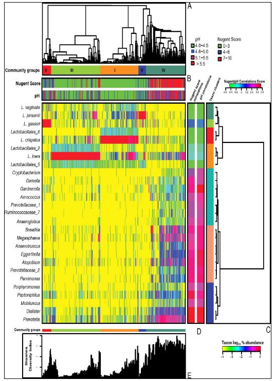 فلورا المهبل الطبيعية التي تعد من الضروريات لحفظ الصحة الإنجابية وسير عملية الحمل بشكل طبيعي ،واضطرابات توازن الأحياء فيها يمكن ان تؤدي الى العديد من المشاكل مثل الإصابات والعقم . والأحياء الشائعة هي العصيات اللبنية المنتجة لحامض اللاكتيك في حالة الصحة لذا يعد ارتفاع عدد العصيات اللبنية وانخفاض الرقم الهيدروجيني pH عن 4.5 مؤشرا صحيا ، ولكن مع هذا فهنالك بعض حالات الصحة التي لا توجد فيها العصيات اللبنية وانما البدائل المنتجة للحامض وبذلك يكون انخفاض الرقم الهيدروجيني هو الدليل المرشح للتنبؤ بصحة المهبل . والبحث عن المكنون الميكروبي المركزي لم يظهر ان هنالك مثل هذا التجمع المركزي أو الأساسي على الأقل في النساء في سن الإنجاب كما تم البحث عنه باستعمال البروتين الوصيف Chaperonin60. وهنالك عددا" من الأسباب التي تؤثر في نوعية الأحياء التي تقطن المهبل فالأمراض والإصابات تكون من الأسباب المؤثرة في ظهور الاختلافات وكذلك يؤثر نمط الحياة والعناية الصحية والسيطرة على الولادة وأكثر العوامل وهذا قد يعود الى الاختلاف في المناعة الفطرية Race المؤثرة هو المضيف كما يتبين من تأثير العرق Innate Immunity وتطبع الجهاز المناعي والاختلاف في مستلمات الطبقة الطلائية المبطنة . وقد أشارت دراسات جينوم المجتمع الى ان الأحياء تتوزع بنمط معين على الأعراق المختلفة وايضا على الرقم الهيدروجيني كما موضح في الاتي :