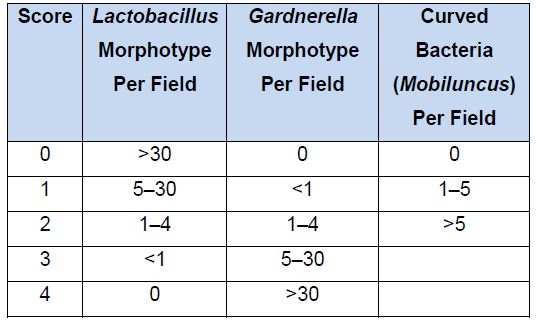 وتقاس صحة المهبل باستعمال Nugent Scoring Syste الذي يركز على حساب العصيات اللبنية في المهبل .