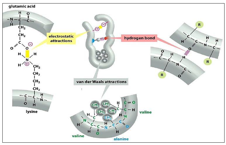 وبالرغم من ان قوى فاندرفال ضعيفة جدا مقارنة بالقوى الآخرى التي تتحكم في بنية البروتين الا ان كثرتها الحاصلة في البروتينات الكبيرة تجعل منها قوى مهمة مؤثرة في طوي البروتينات كما موضح في الاتي :