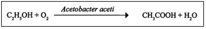 والمرحلة الثانية أكسدة الكحول الناتج إلى حامض الخل بواسطة بكتريا الخل Acetobacter