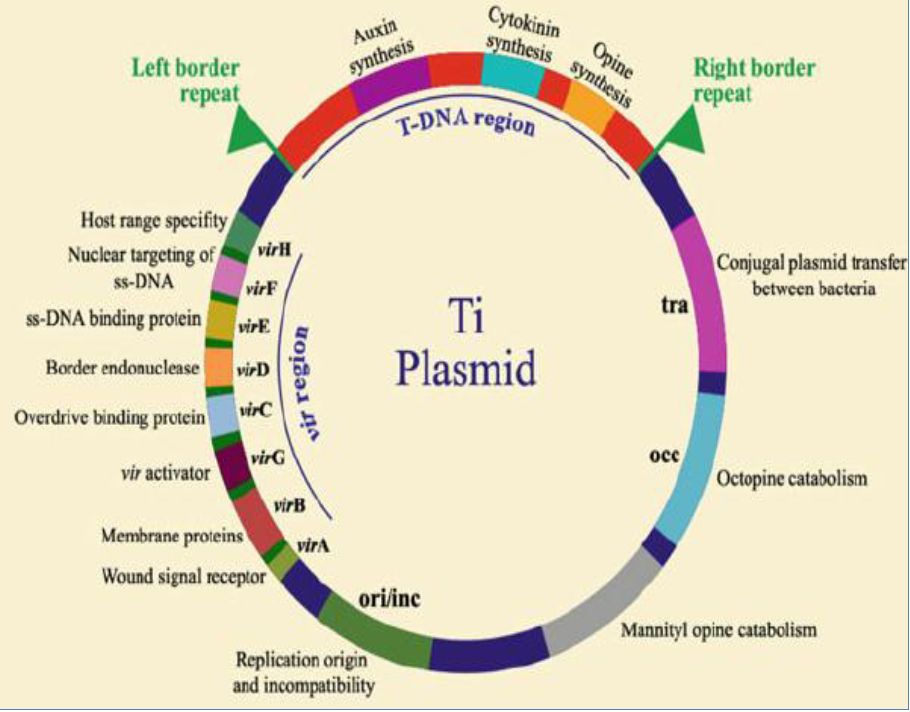 جينات الضراوة الموجودة على Ti-plasmid في منطقة Virulence Region في البكتريا Agrobacterium tumefaciens وتوجد في منطقة تحفز بواسطة مواد تنتج من الخلايا النباتية المجروحة مثل Acetosyringone , Hydroxy-acetosyringone ، تحوي منطقة الضراوة على 6 جينات A-G وكل منها له وظيفة خاصة .