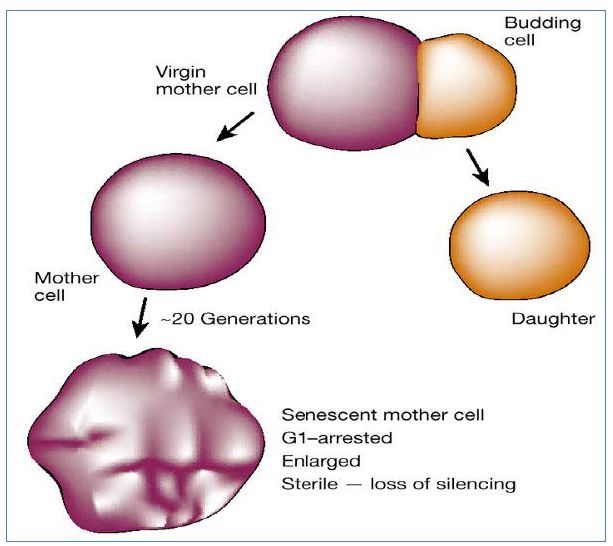 خلايا الخمائر الفتية التي لم يظهر عليها أي برعم مقارنة بالخلايا الكبيرة بالعمر التي تكون جدرانها الخلوية الخارجية حاوية على الكثير من ندب البراعم Bud Scars .
