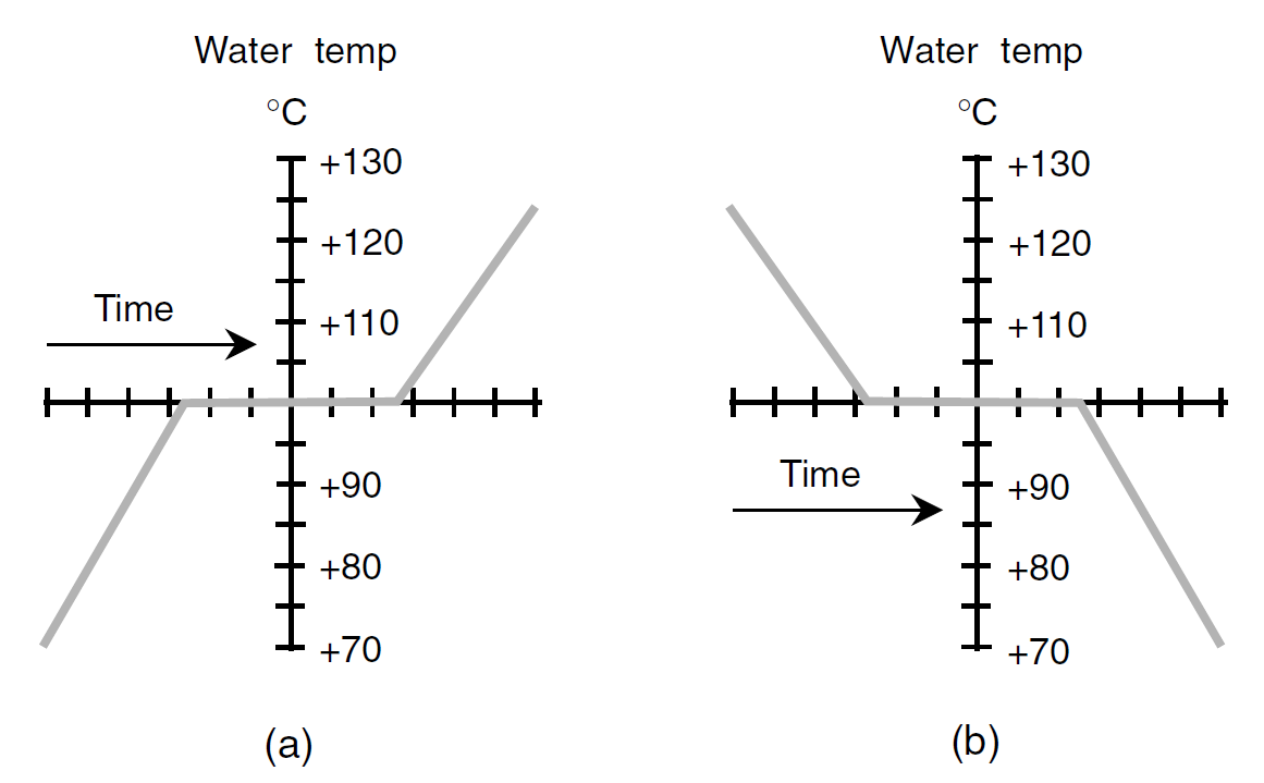 As is the case with melting and freezing, the temperature of water does not follow exactly along with the air temperature when heating or cooling takes place in the vicinity of +100°C. Instead, the water temperature follows a curve something like that shown in Fig. 1. In part a, the air temperature
