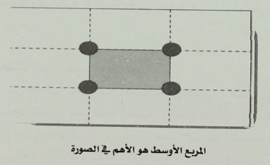 الصورة أدناه توضح تماماً أن المقصود في هذه الصورة هو إبراز القمر فهو يقع في المربع إلا وسط، وفي مركز الصورة. ولو أن نفس الصورة هذه قمنا بتصوير القمر ووضعناه في مريع آخر لاختلف الأمر كثير. (لاحظ أن أغصان الشجر في مقدمة الصورة تملأ جزءاً كبير من المساحة في المريعات الجانبية إلا أن أهميتها أقل من أهمية القمر. لاحظ أيضاً أن نفس الصورة أدناه التي اختلف فيها موقع القمر الذي لم يعد في المركز انه فقد اهميته في الصورة لمجردة انه لم يعد في المركز. ومثل هذه الصورة لا نركز فيها على شيء بعينه لذا تظهر مسطحة).