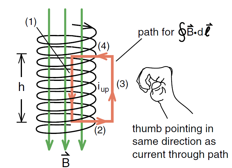 With nh turns, each carrying a current i, going up through our path, we see that ienclosed must be