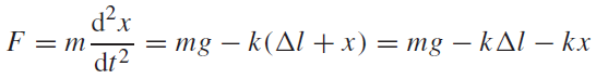 Perhaps not surprisingly, this result is identical to the equation of motion (1) of the horizontal spring: we simply need to measure displacements from the equilibrium position of the mass.