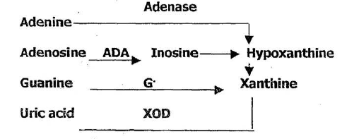 أما الطبيعية الكيميائية لهذه التفاعلات فهي عبارة عبارة عن قيام انزيم G بتمئ القاعدة البيورينية guanine وتحويلها إلى xanthine واموينيا وكذا الحال بالنسبة لأنزيم ADA حيث يقوم بتحويل Adenosine إلى Inosine وأمونيا.