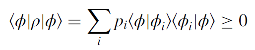 ii. The density operator is a positive operator. For any arbitrary state ∣φ〉, the overlap of this state on the density operator is: