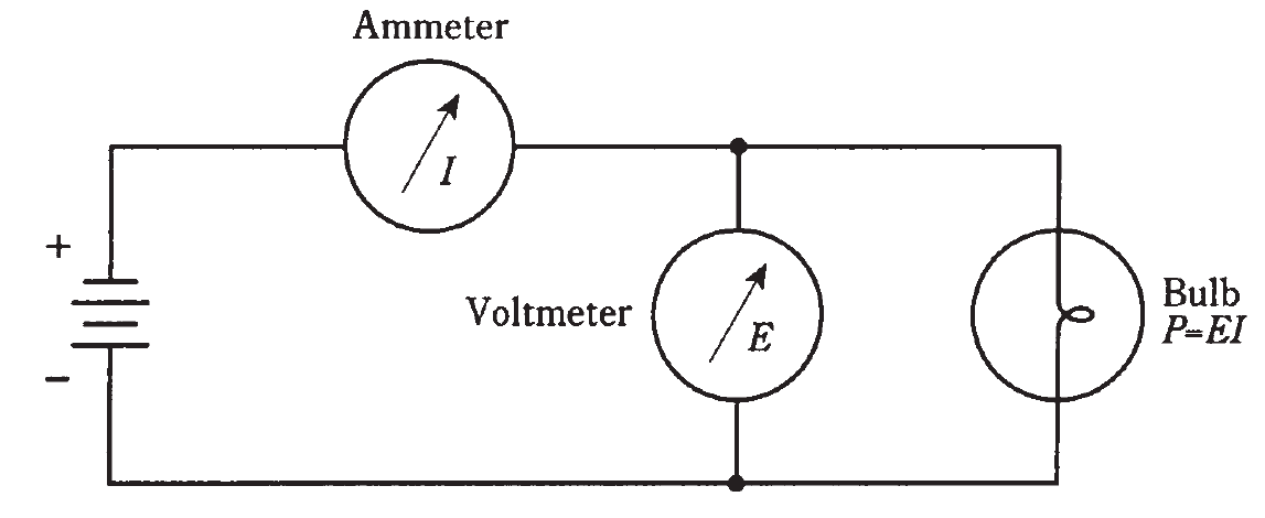 Fig. 1: Power can be measured with a voltmeter and an ammeter.