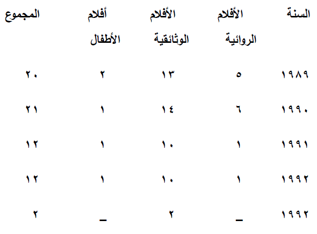 جدول رقم (8) يوضح الافلام المنتجة في تلفزيون العراق خلال خمس سنوات