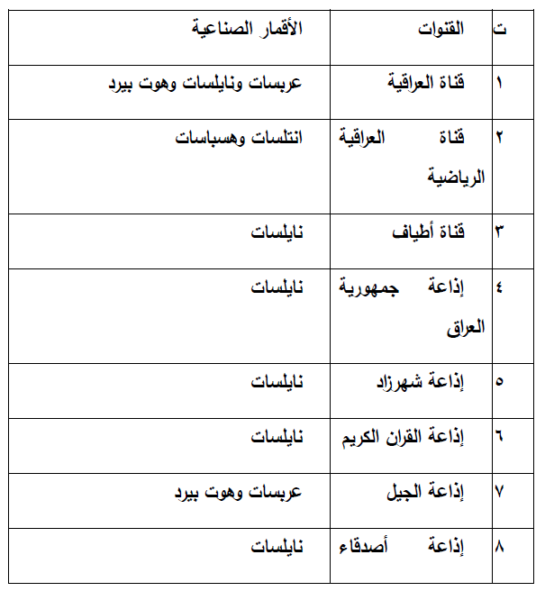 القنوات التابعة لشبكة الاعلام والاقمار التي تبث عبرها