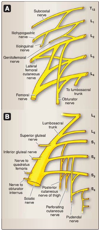 Figure 5: A, Lumbar plexus. B, Sacral plexus.