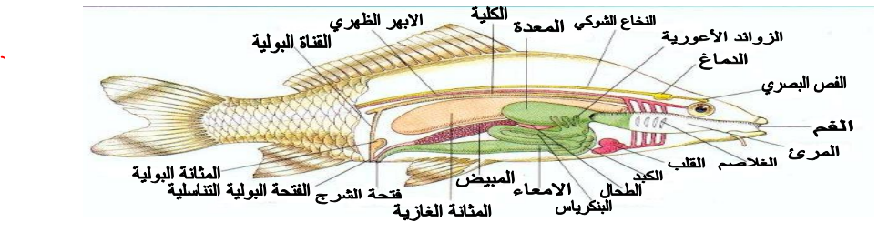 الشكل 1 التشريح الداخلي والجهاز الهضمي في الأسماك